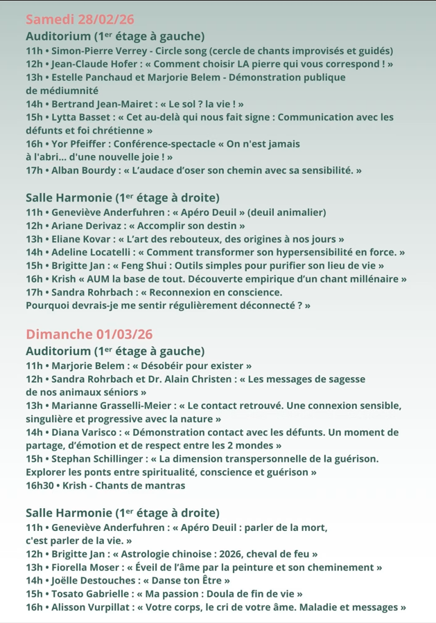 - 16h le samedi 28 : Conférence-spectacle de Yor Pfeiffer.